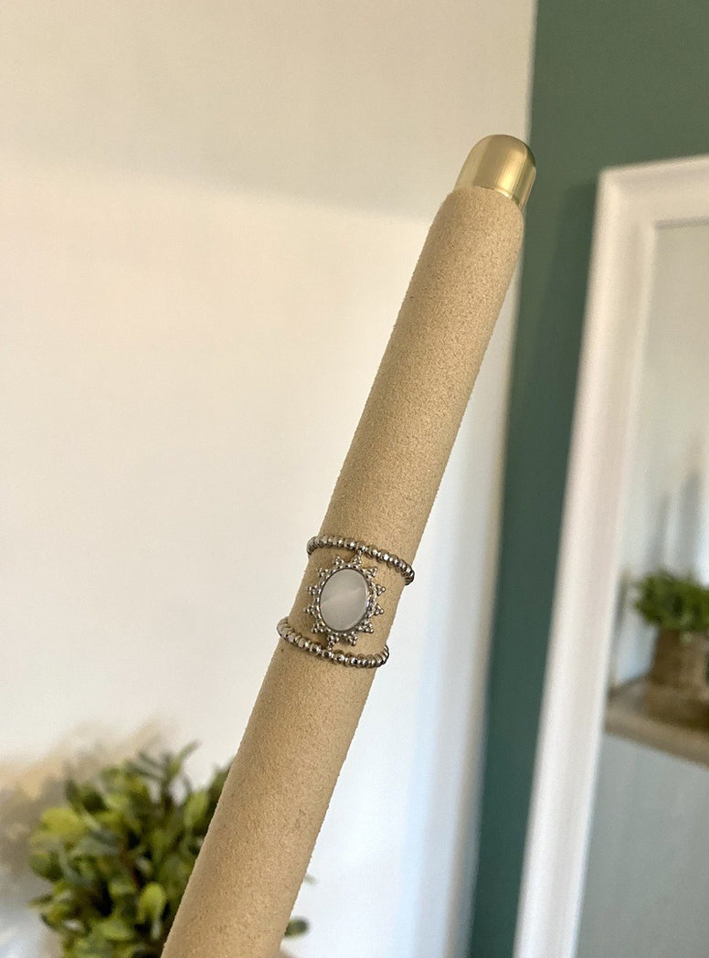 • Bague double rangs avec pierre naturelle ou nacre ovale