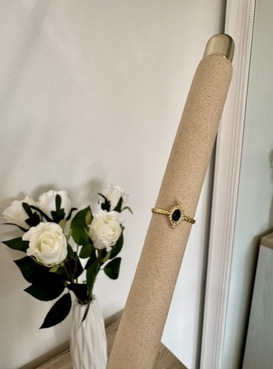 Bague fine en acier inoxydable effet torsadée composée d’une pierre naturelle ovale d’Onyx sur une pièce aux contours effet perlé.Ajustable, la bague se resserre ou s’agrandit : de la taille 52 à 56Epaisseur de l’anneau : 2 mmHauteur de la bague: 10 mmDimensions de la pierre : 3 x 5 mm