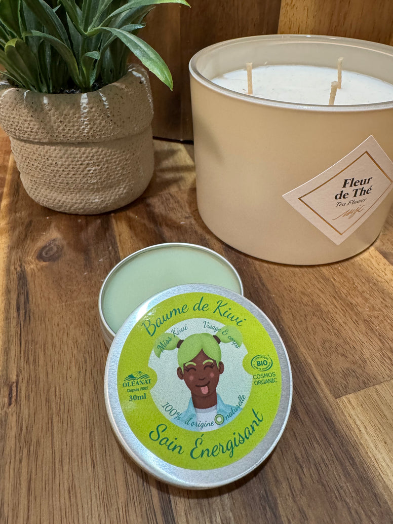 Le Baume au Kiwi Bio d’Oléanat est un soin ultra-nourrissant, idéal pour hydrater et protéger les peaux sèches. Enrichi en beurre de karité bio et en huile d’amande douce, il pénètre rapidement pour apaiser et adoucir la peau, tout en laissant un délicat parfum fruité de kiwi.Sa texture fondante et non grasse en fait un allié parfait pour les lèvres, les mains et les zones sèches du corps.✔ Beurre de karité bio : nourrit et protège durablement✔ Huile d’amande douce bio : assouplit et apaise✔ Parfum naturel de kiwi pour une touche de fraîcheur exotique