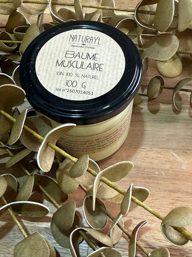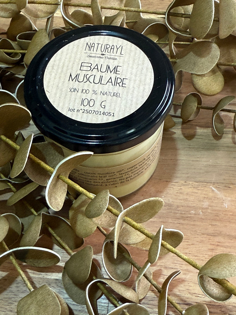 Baume musculaire. Pot en verre. Aux huiles essentielles de gaulthérie, de romarin camphré et de lavandin (aux vertus antidouleurs et apaisantes), notre baume musculaire s'utilise en massage suite à l'effort ou après le sport, pour décontracter les zones sensibles et endolories. Enrichi en beurre de karité, en huile de coco mais surtout en macérât d'arnica, il permet un massage agréable ainsi qu'une rapide absorption de la peau. Ingrédients : cocos nucifera oil*, copernicia cerifera wax*, olea europaea fruit oil*, butyrospermum parkii butter*, gaultheria fragrantissima leaf oil*, rosmarinus officinalis leaf oil*, lavandula hybrida oil*, arnica montana flower extract*, tocopherol, helianthus annuus seed oil*, rosmarinus officinalis leaf extract*, coumarin **, geraniol **, limonene**, linalool** *issu de l’Agriculture Biologique / **naturellement présent dans les huiles essentielles