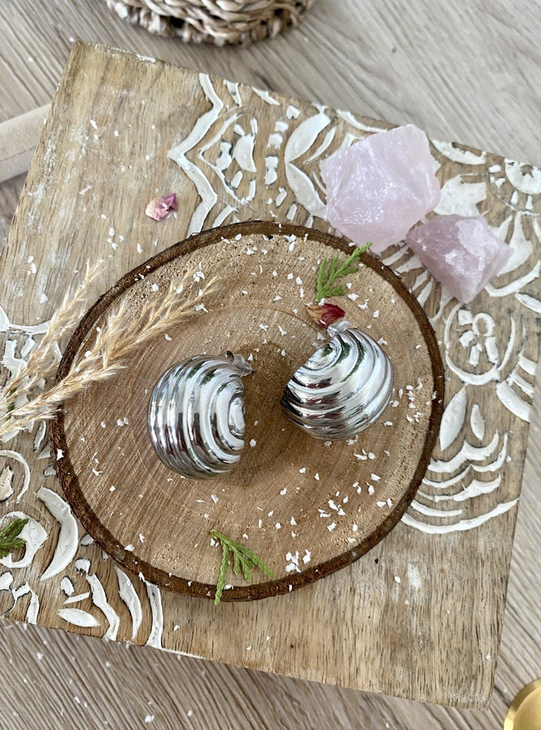 Boucles d’oreilles à puce en acier inoxydable composées d’une pièce bombée aux allures de coquillage.Dimensions de la créole : 22 x 28 mmEpaisseur : 18 mm