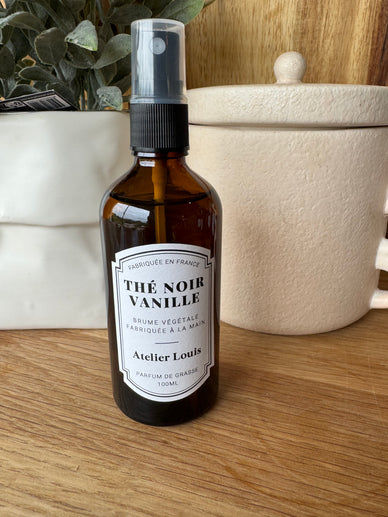 Cette brume d'intérieur Thé Noir & Vanille offre une expérience olfactive épicée et gourmande pour parfumer votre maison.