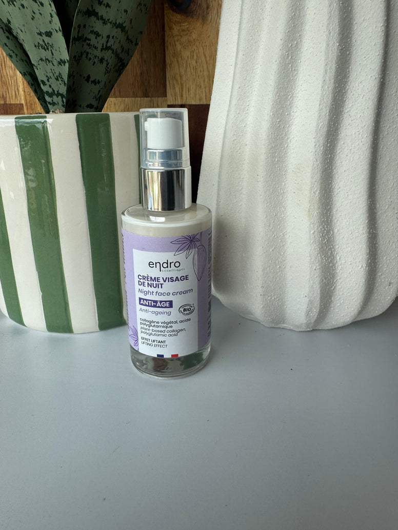 Cette crème de nuit 100% d’origine naturelle est idéale pour nourrir et prendre soin de votre peau pendant votre sommeil. Sa texture riche, enrichie en collagène végétal et acide polyglutamique aide à restaurer l'élasticité et la fermeté de la peau. En complément, un actif à l’effet tenseur contribue à lisser les rides et ridules dès les premières applications ! Format : 50ml - Flacon pompe