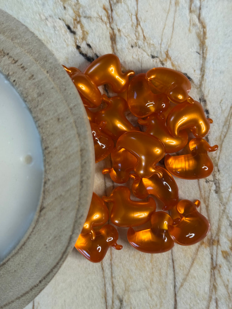 Ces perles de bain, canard orange renferment de l'huile de soja parfumée à l'abricot. Cette formule nourrit la peau en profondeur, la rendant plus souple et la protégeant des agressions quotidiennes.